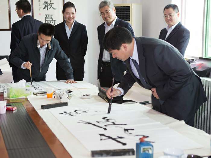 为弘扬传统文化,丰富员工业余生活,5月6日上午,开云·官方站线上登录平台入口-开云(中国)举办了首届书画艺术学习交流活动。本次活动邀请了中国书法家协会会员孟云飞博士、中国书法家协会理事张铜彦先生、中国书法家协会编辑出版委员会副主任王荣生教授、人民艺术家协会理事于瑛先生等国内知名书画大师,各位书画大师在活动现场进行了艺术创作表演,挥毫泼墨,交流技艺,为开云·官方站线上登录平台入口-开云(中国)留下了数十副墨宝,还对部分员工的书画作品进行了悉心指导。公司员工现场欣赏了书画大师的艺术创作,并聆听了有关书画艺术鉴赏知识的介绍,部分员工还在活动现场进行创作,听取书画大师的讲解示范和点评。